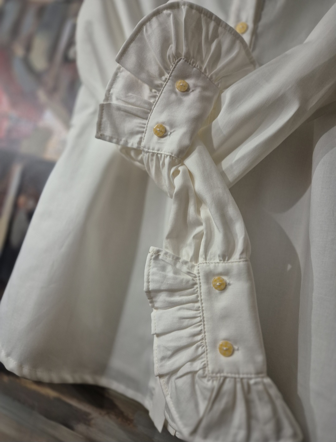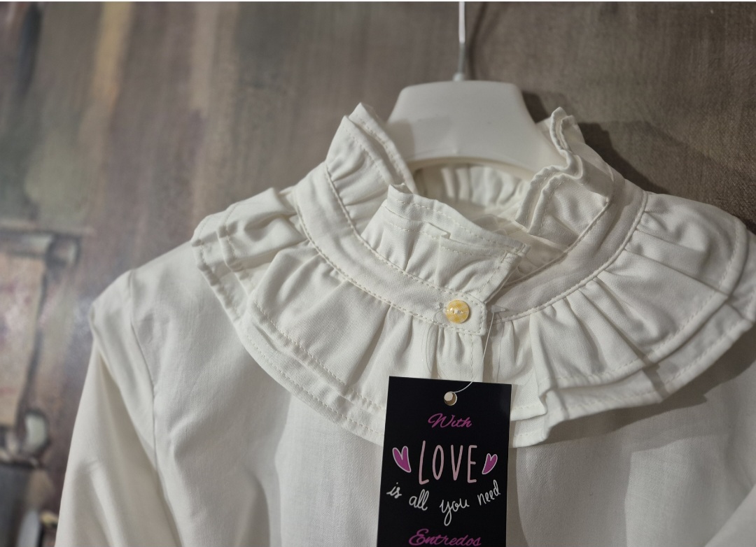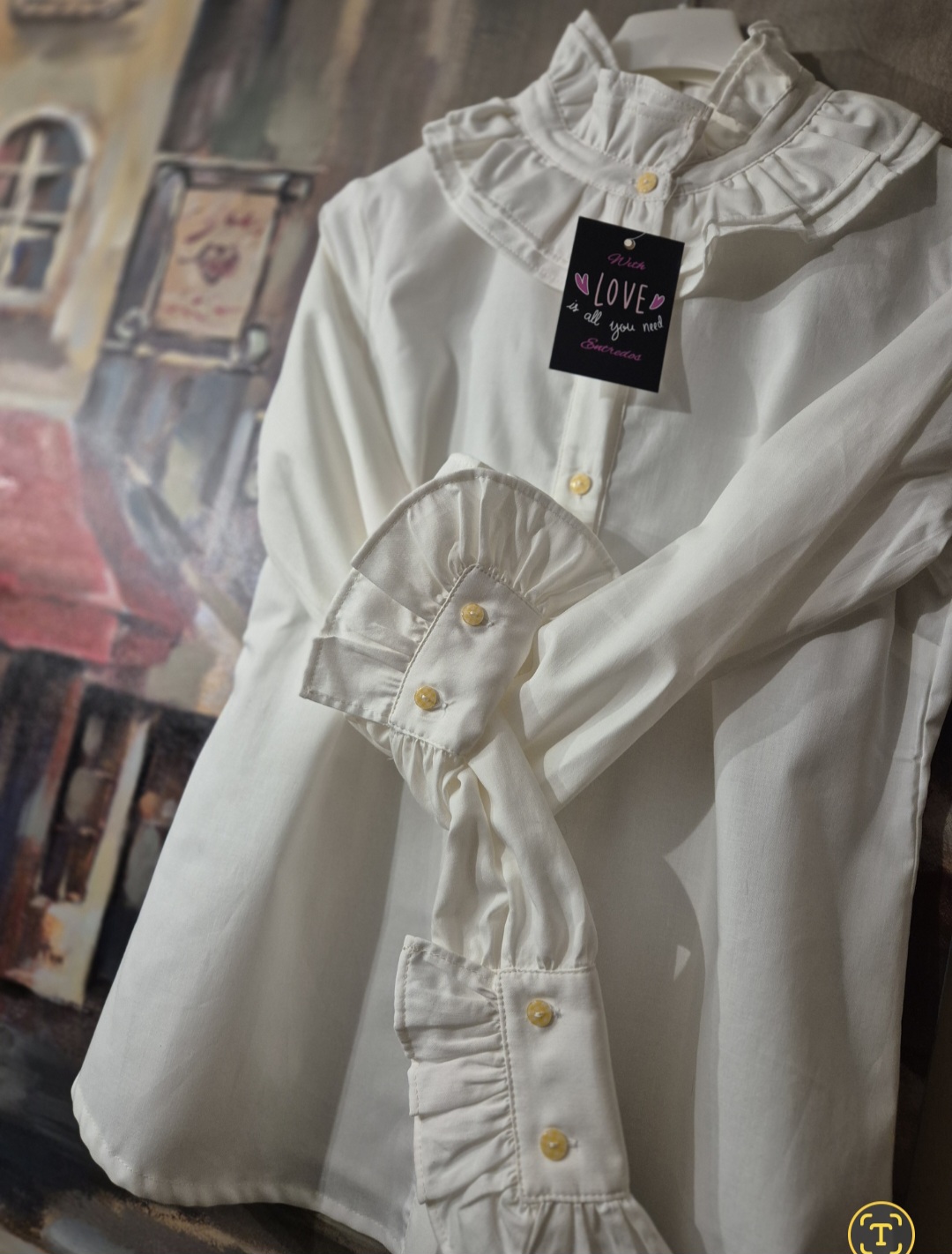 Preciosa y elegante blusa en tejido algodón color blanco roto