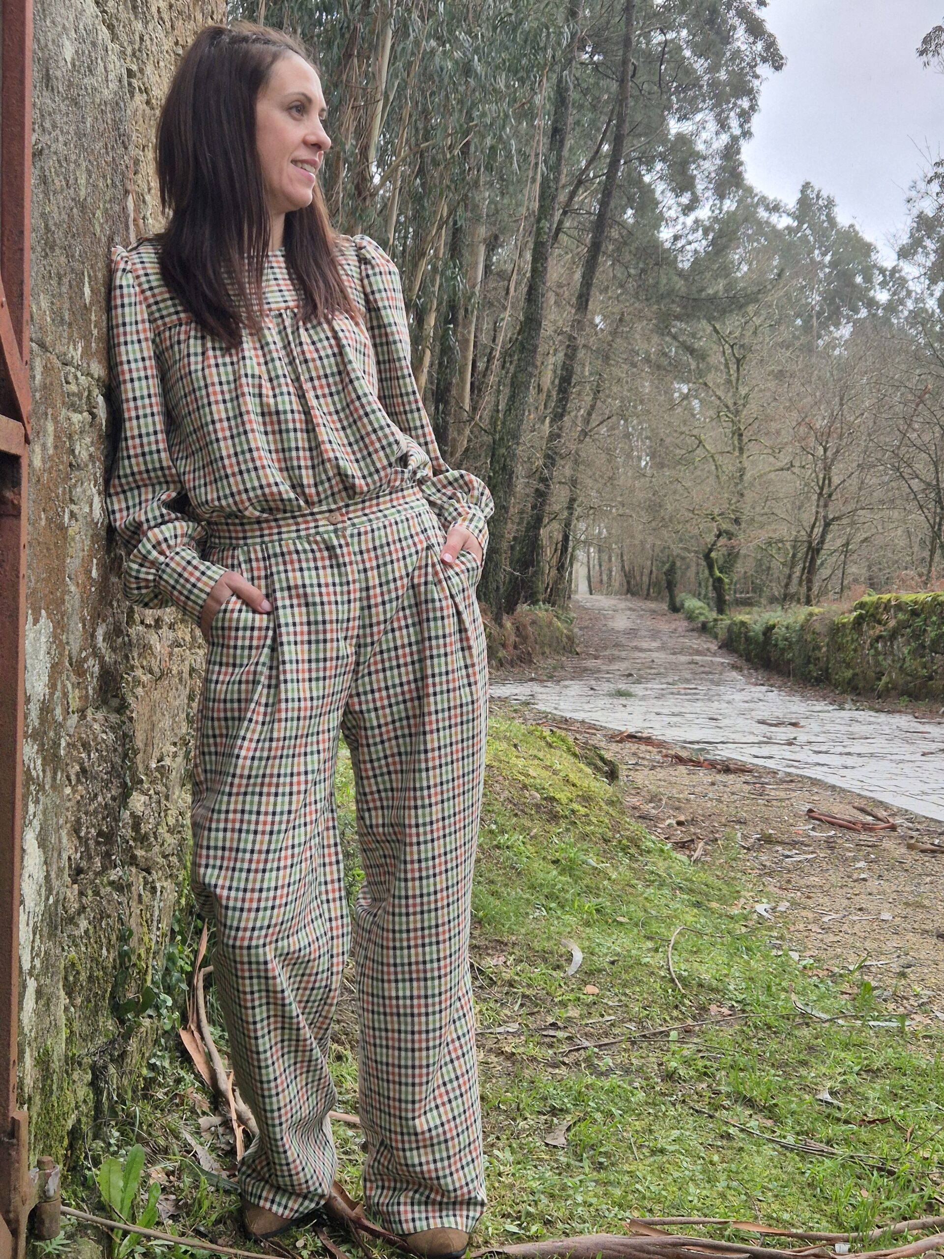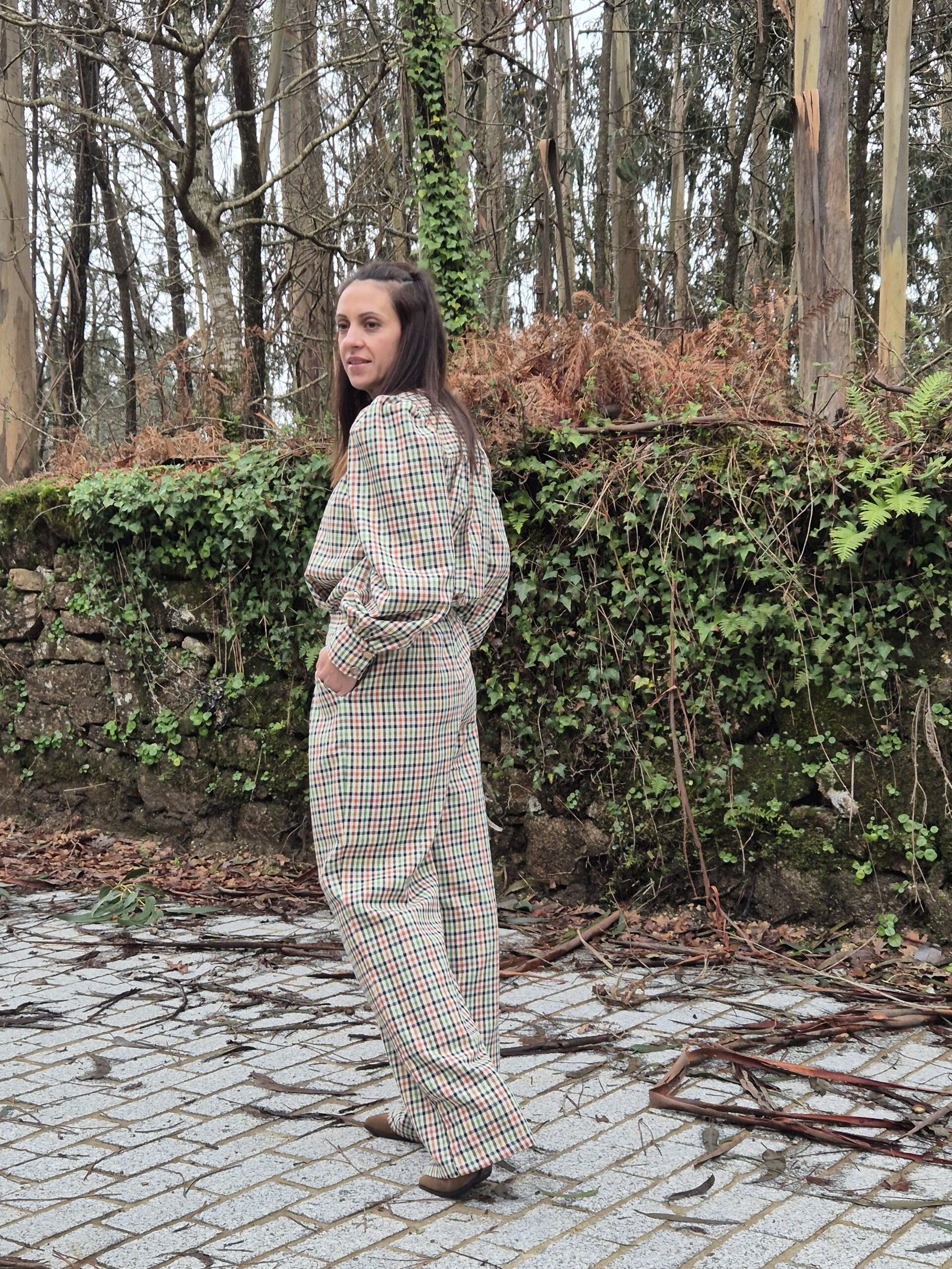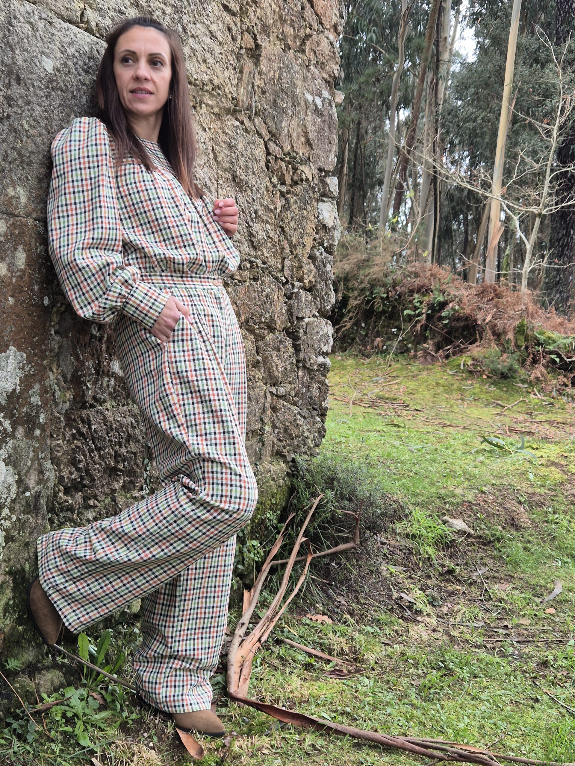 Precioso dos piezas en tejido algodón con print de cuadros súper colorido y alegre