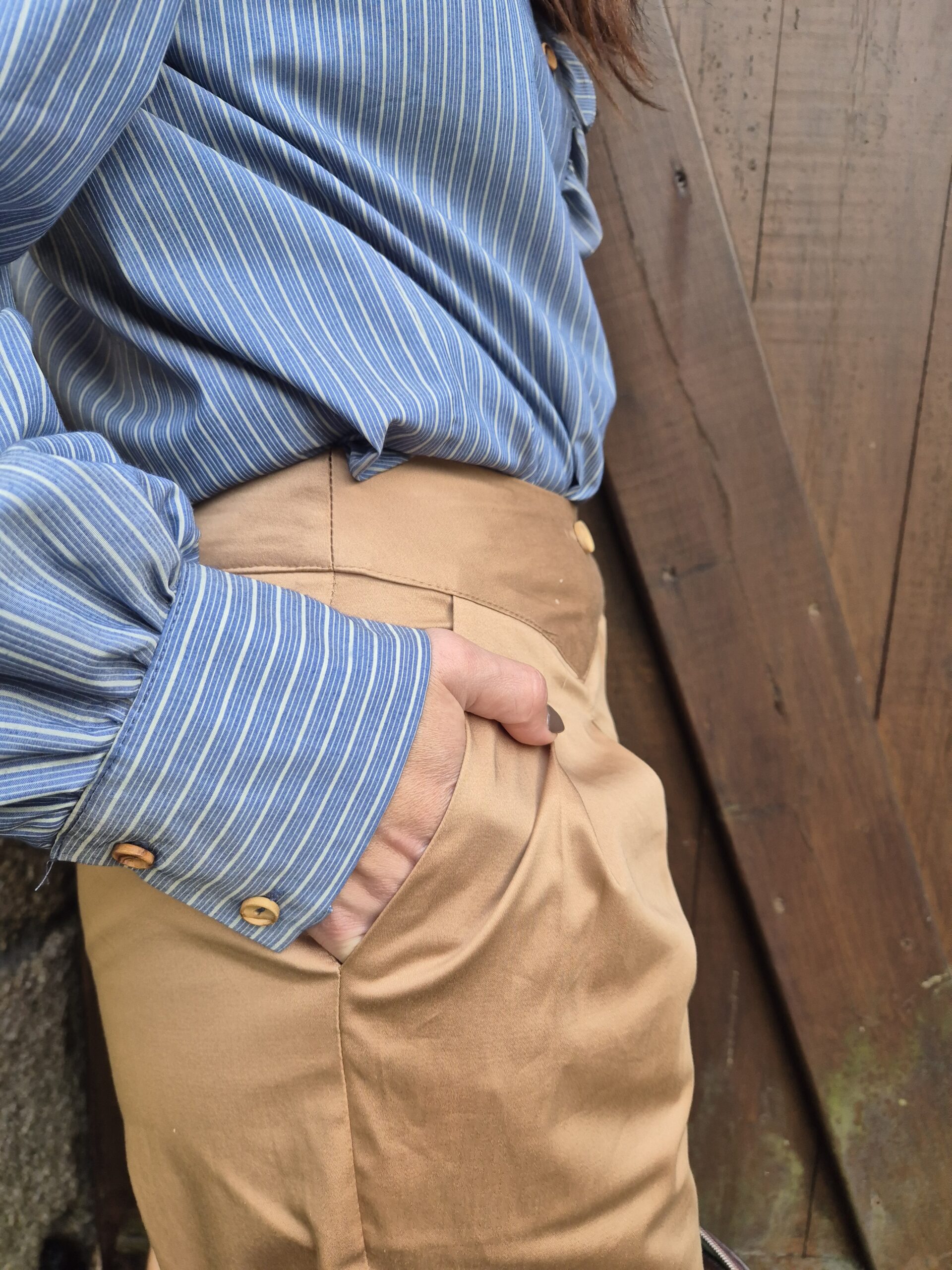 Bajo con pliegues y trabilla con botón a modo de puño