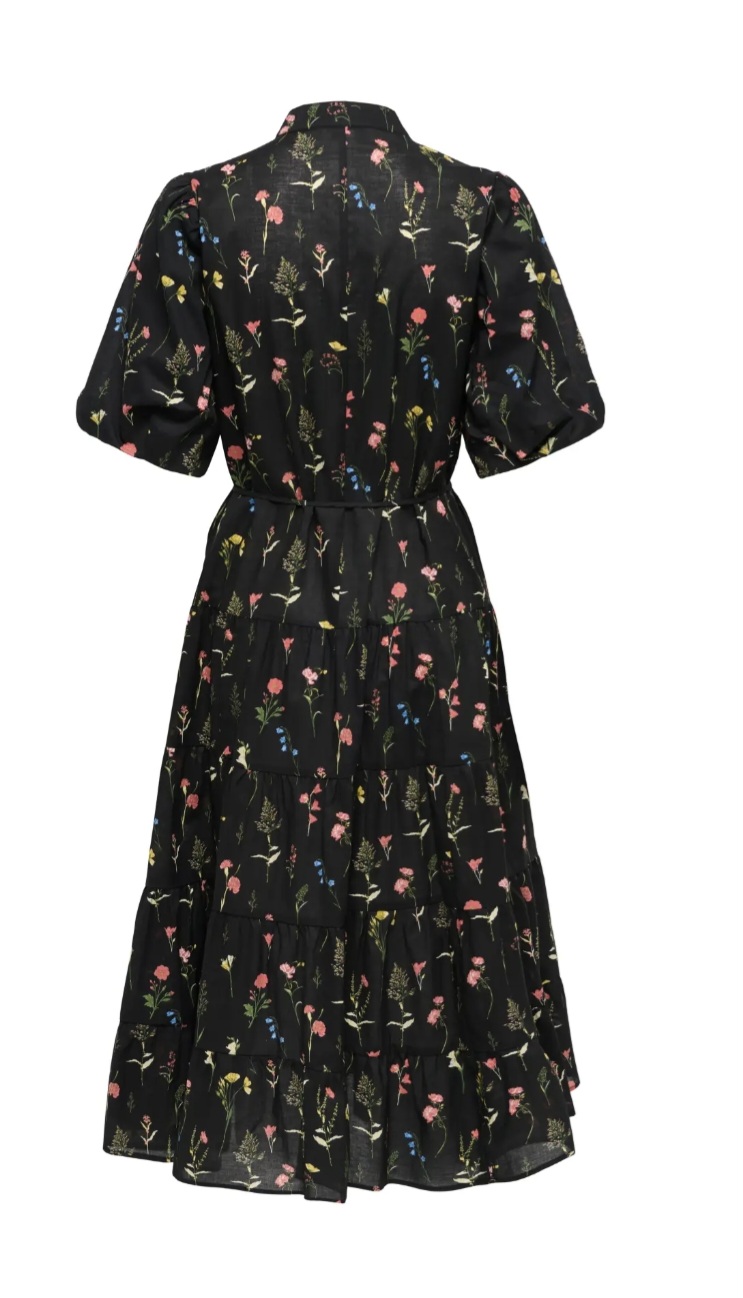 Precioso vestido marca Only fondo negro con print floral multicolor