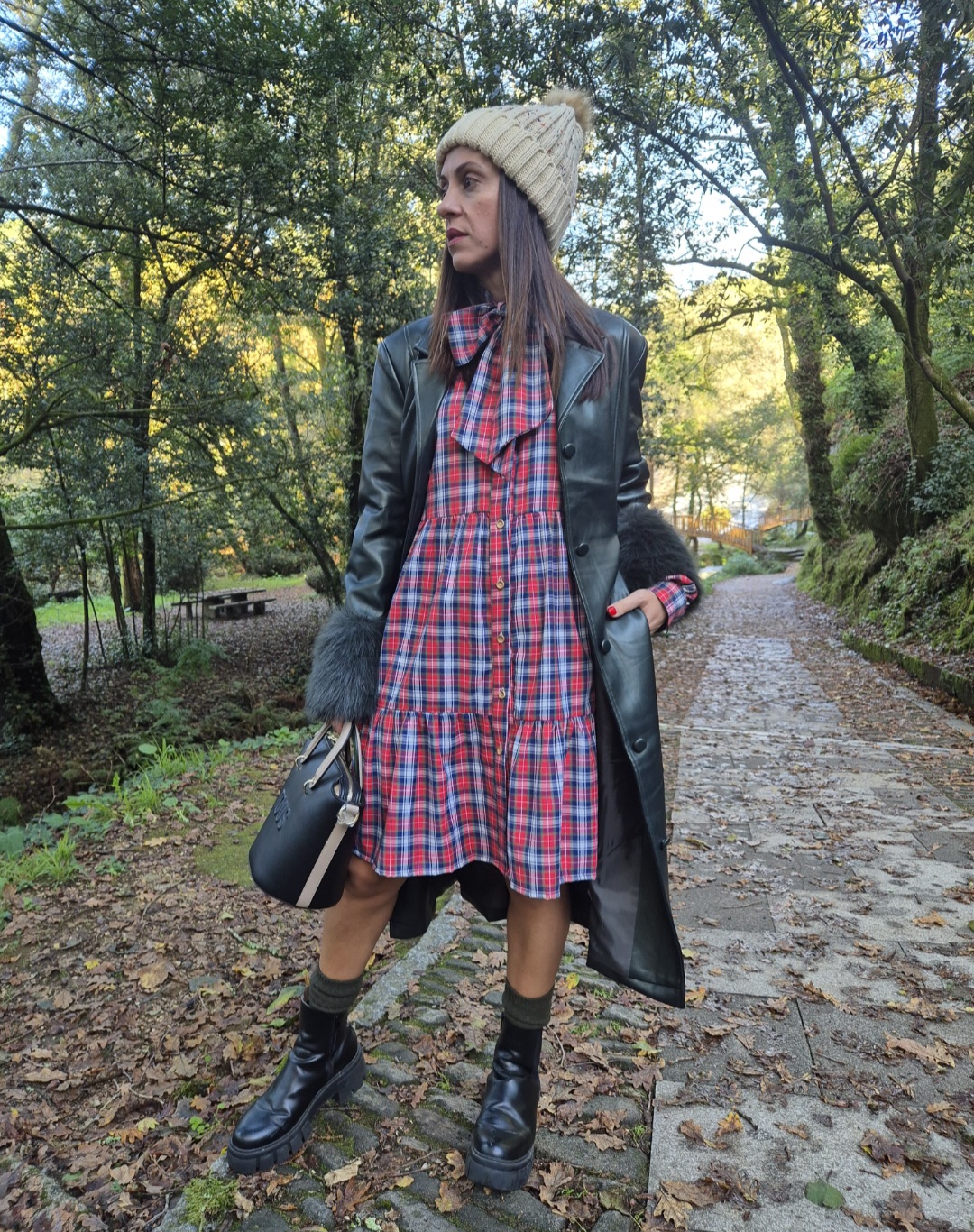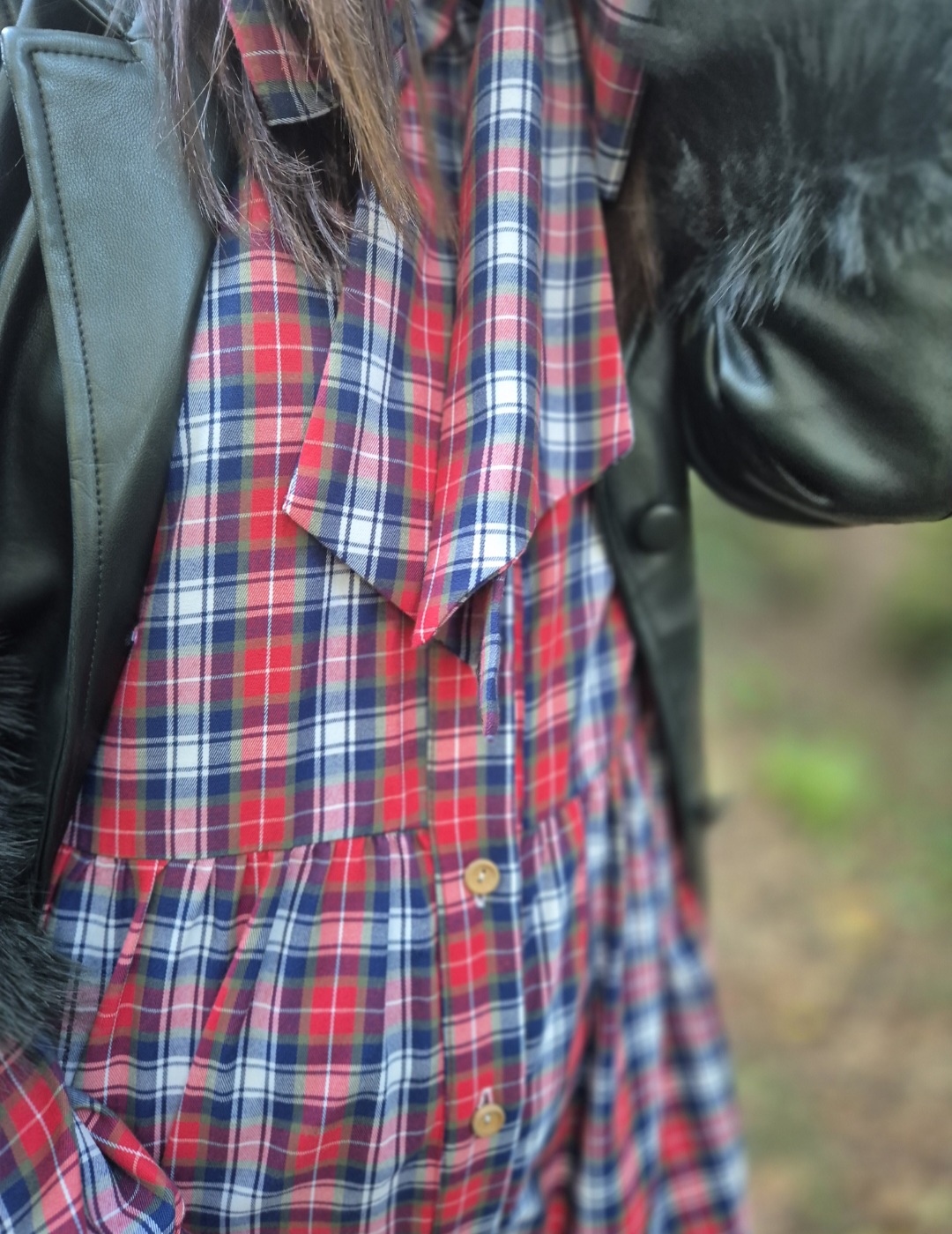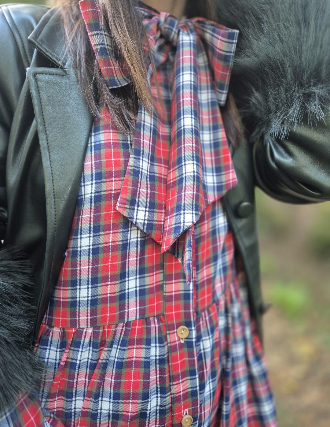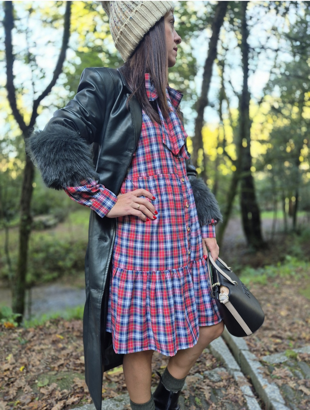 Precioso vestido en cuadros tartan rojo de corte camisero escote redondo y maxilazo