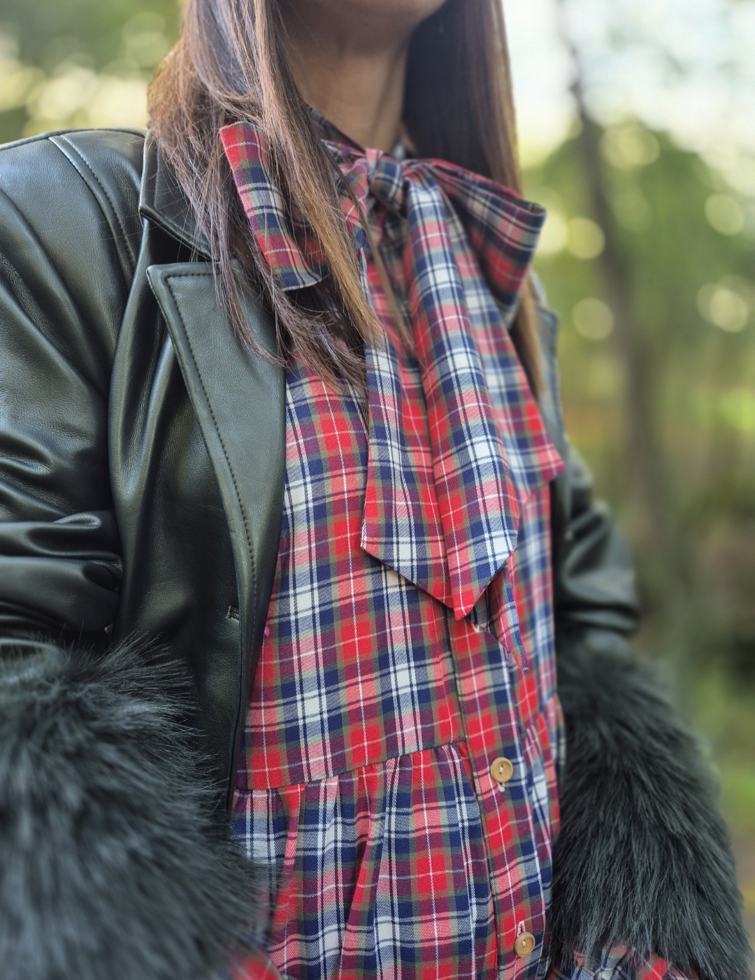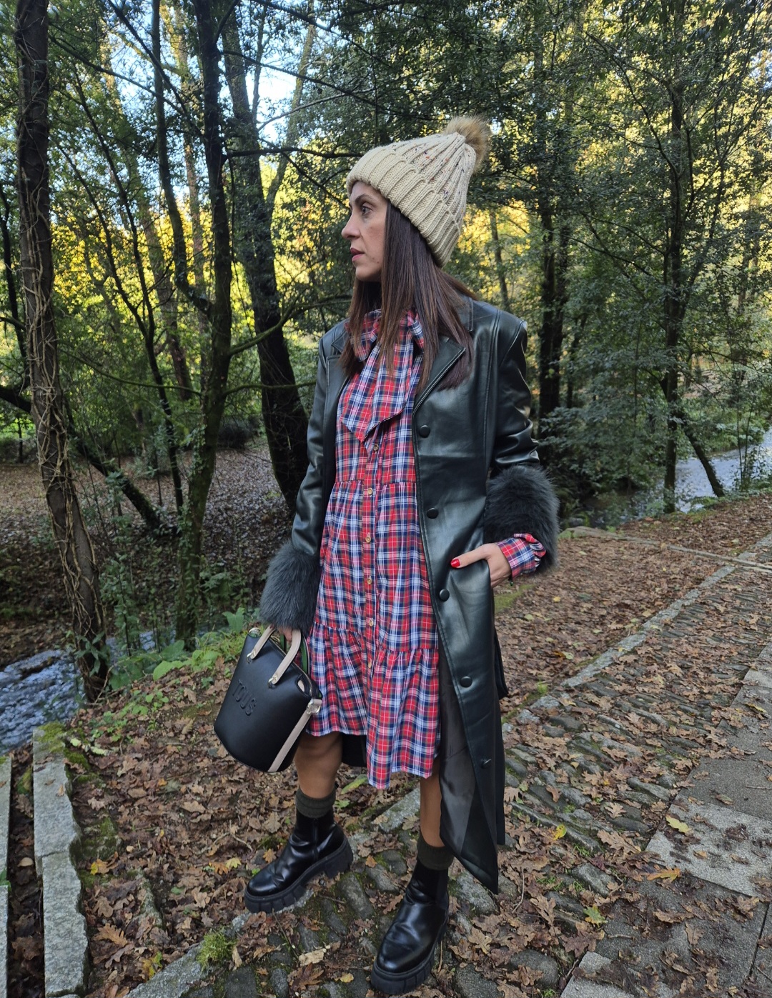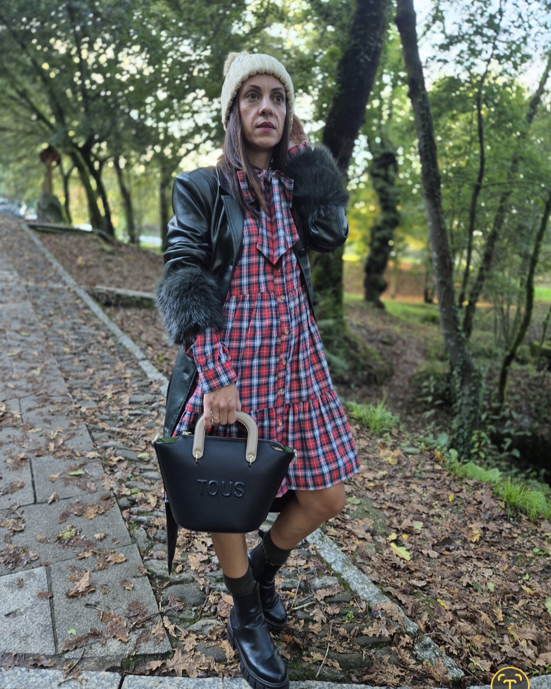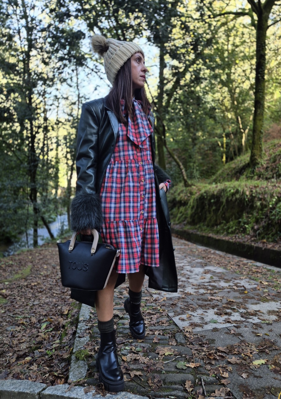 Precioso vestido en cuadros tartan rojo de corte camisero escote redondo y maxilazo